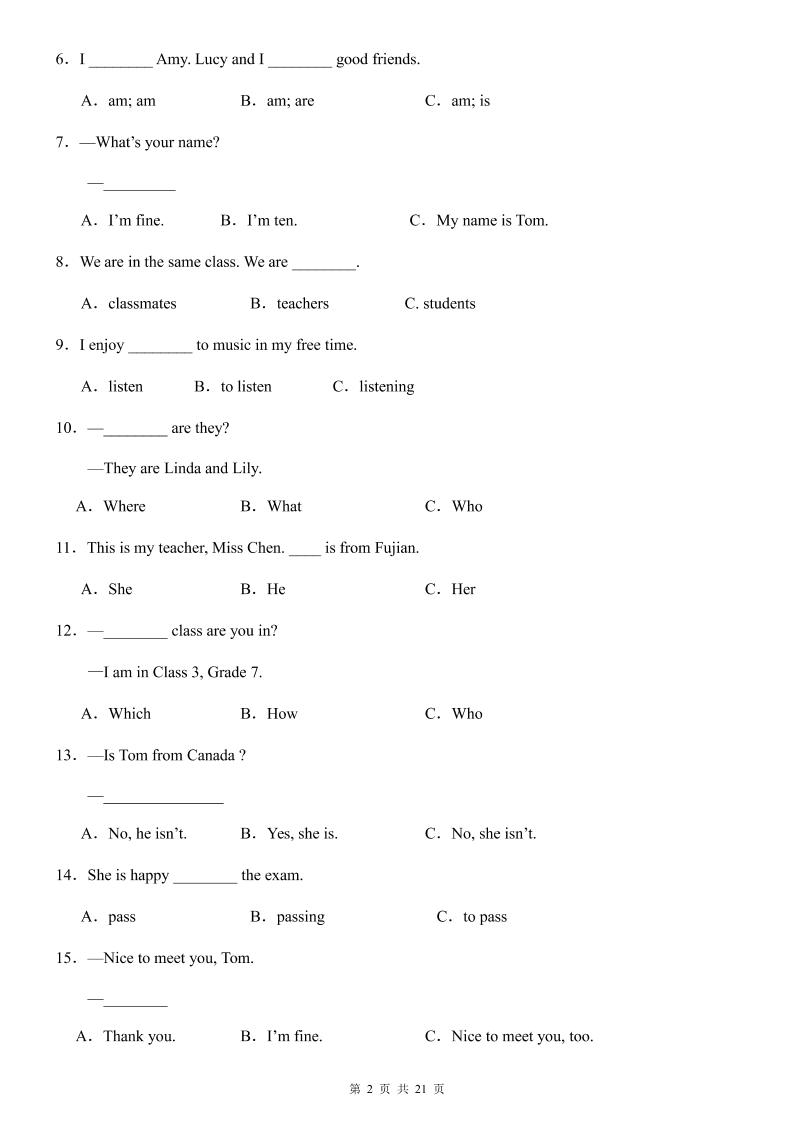 七年级上英语第1次月考卷(仁爱版)-喜学网