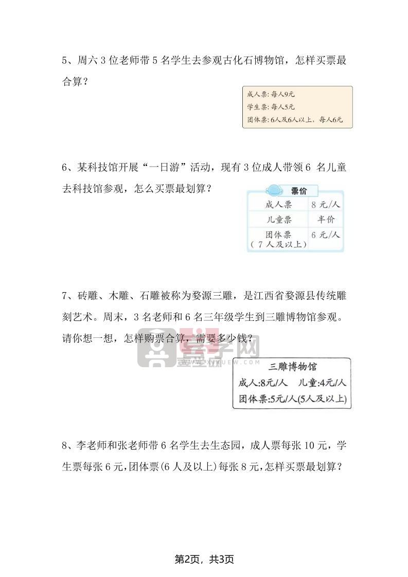 三上数学“购票问题”专项练习3页-喜学网