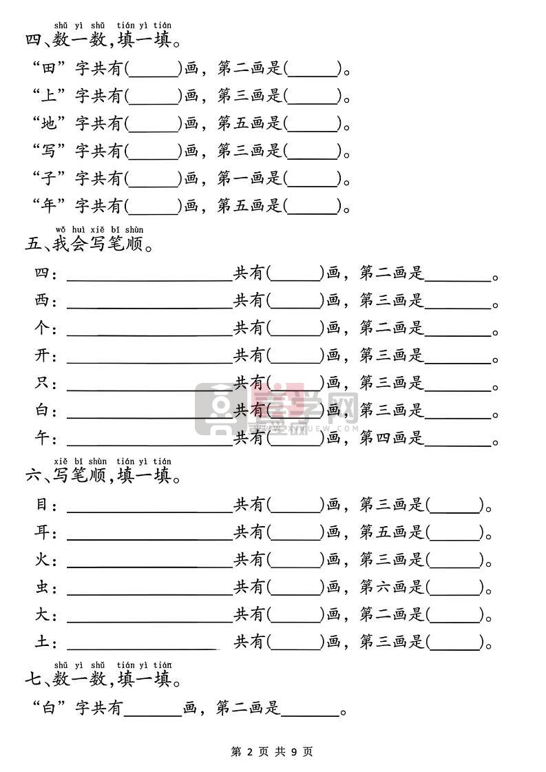 一年级上册语文重点必考易错题9页-喜学网