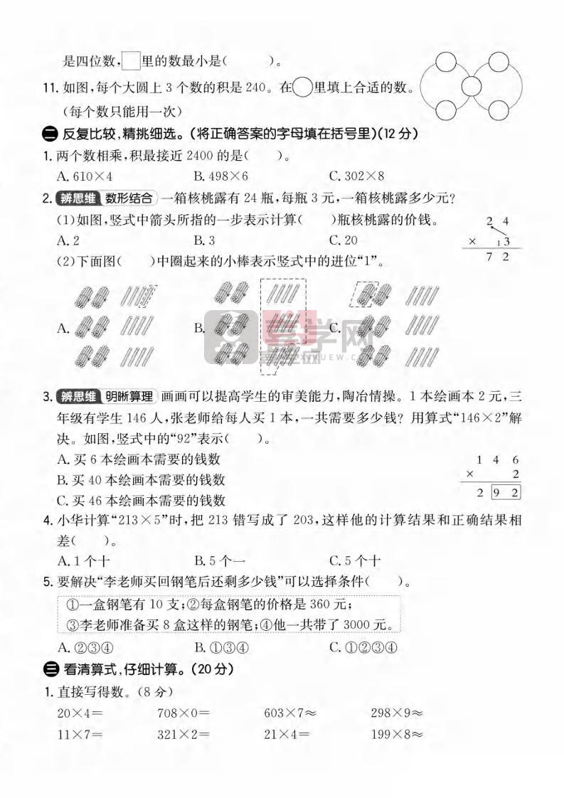 三年级上数学第五单元拔尖测试卷3《青岛63版》1-喜学网