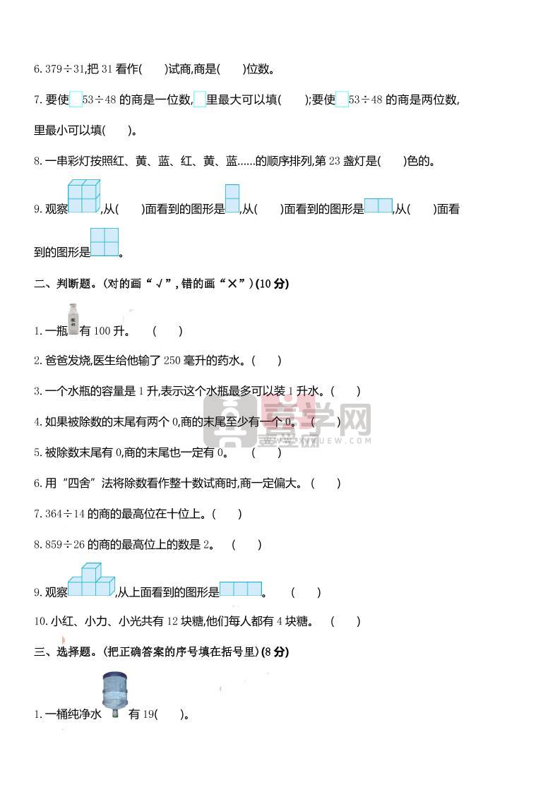 四上苏教版数学期中检测卷.1-喜学网