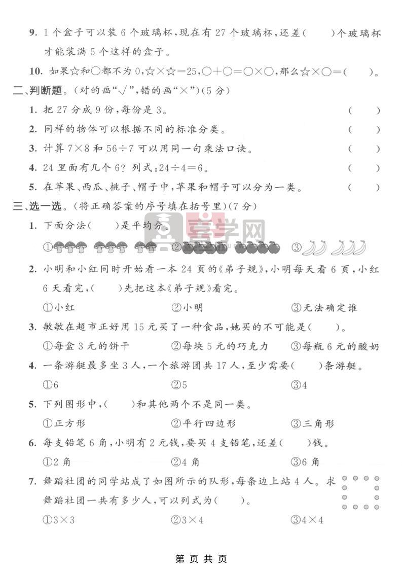 二年级上数学期中拔尖测试卷1《人教版》-喜学网