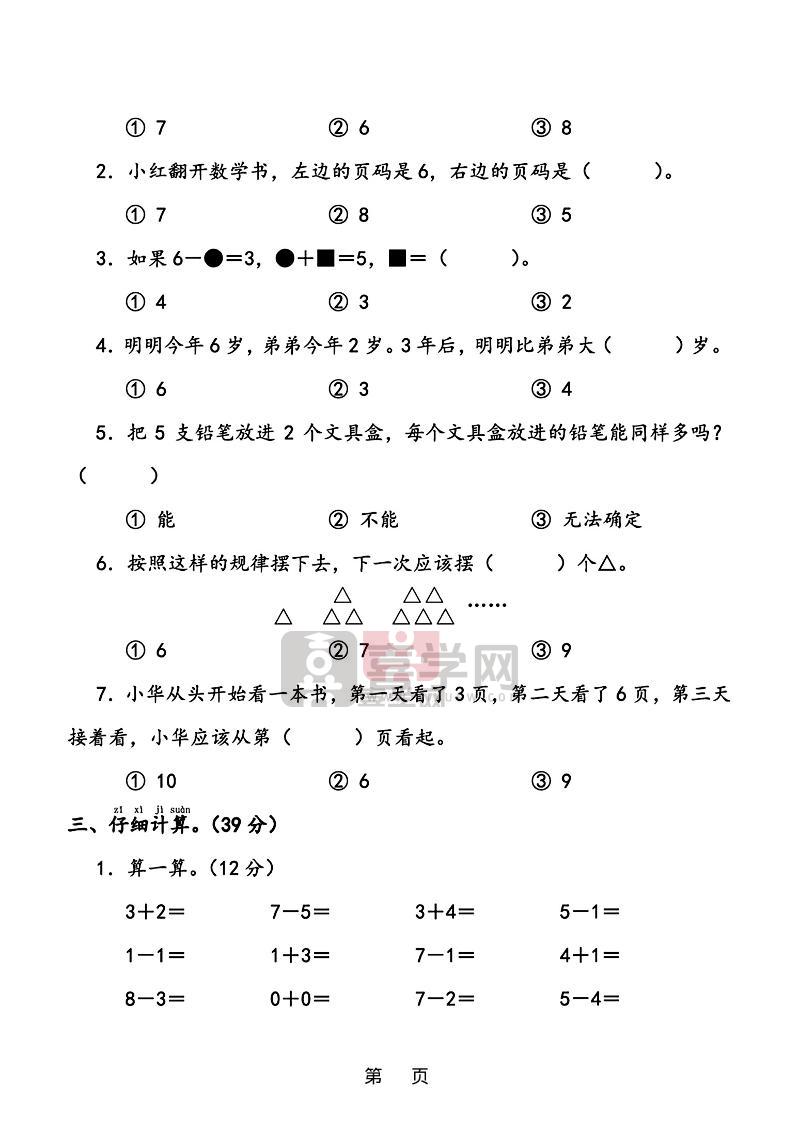 25年一上数学期中综合素养过关卷(含答案6页)-喜学网