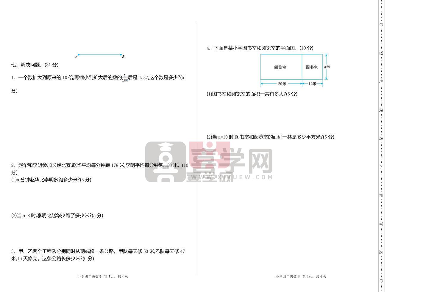 四上54制青岛版数学期中检测(B)-喜学网