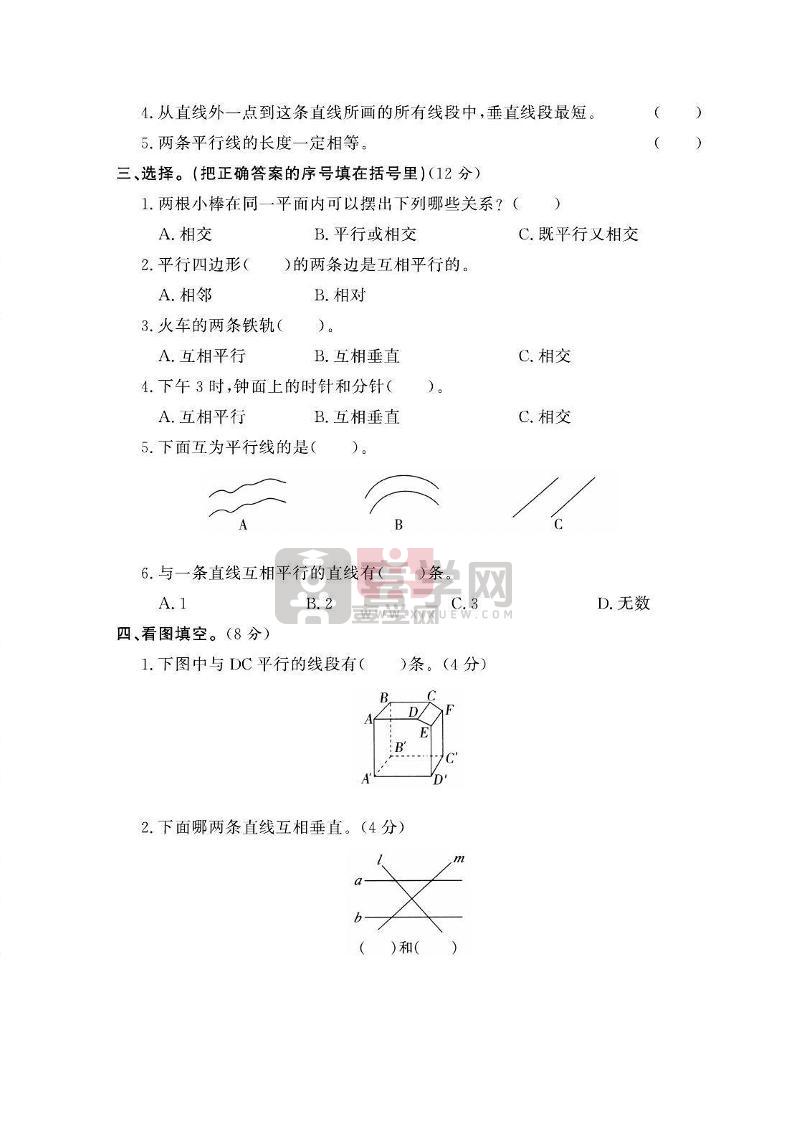四年级上数学第五单元课时卷《西师版》-喜学网