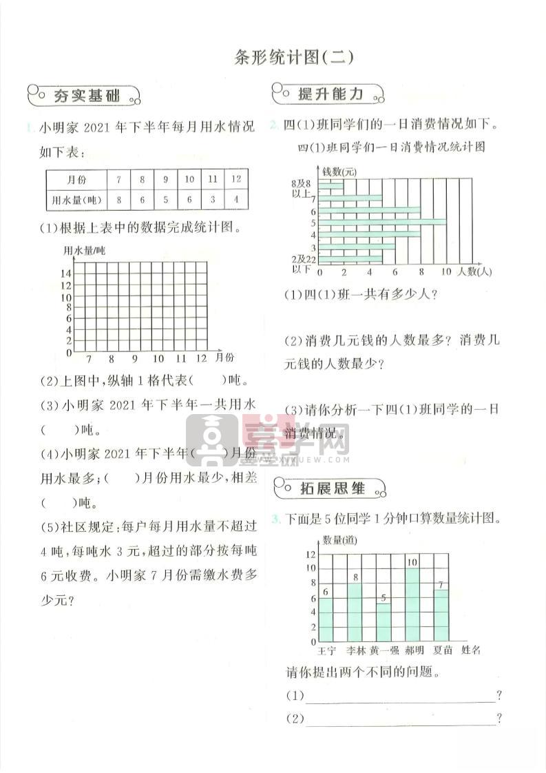 四年级上数学条形统计图综合提升训练-喜学网
